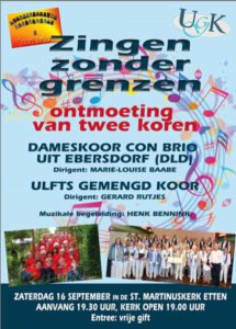 Concert Ulfts Gemengd Koor op 16/9 in Martinuskerk Etten